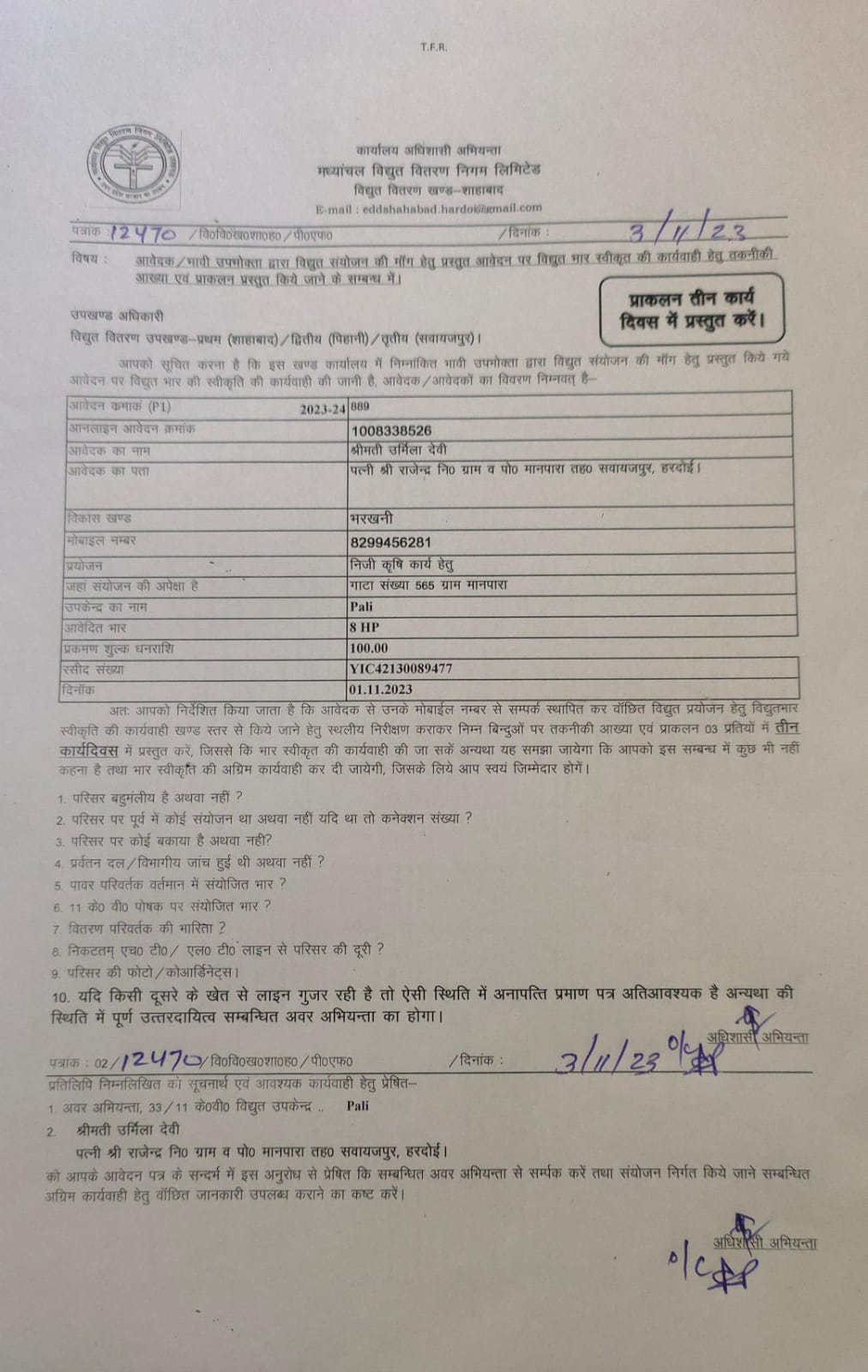 | 1 | PROVIDE DECLARATION AND NOC | 08/11/2023 | Application resubmitted for further proceedings due to response not getting from enterpreneur with in predefined time limit. | 20/12/2023 |