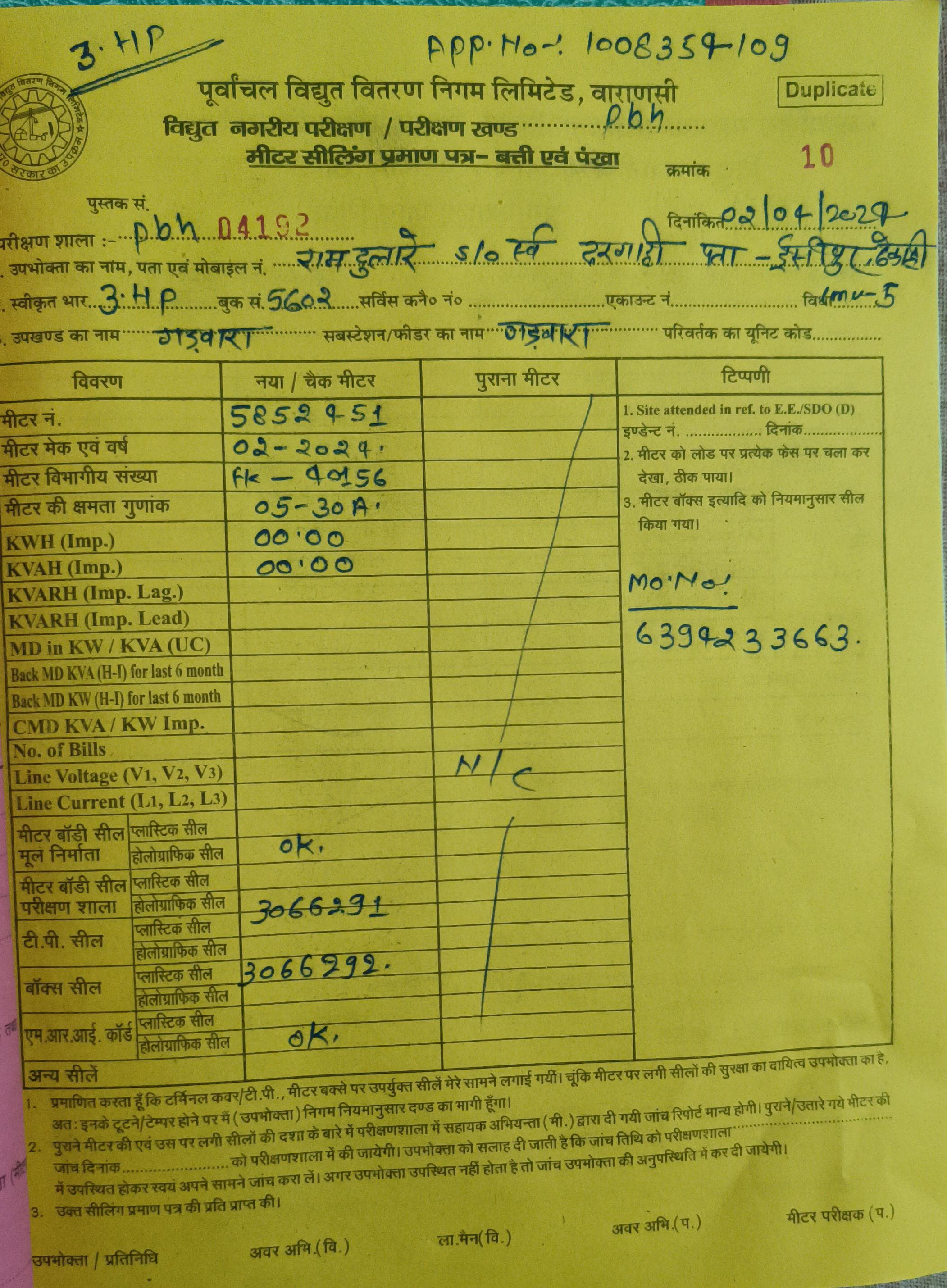 | 1 | Meter Installed connection released but sealing not upload due to site problem | 06/12/2023 | Application resubmitted for further proceedings due to response not getting from enterpreneur with in predefined time limit. | 21/02/2024 |