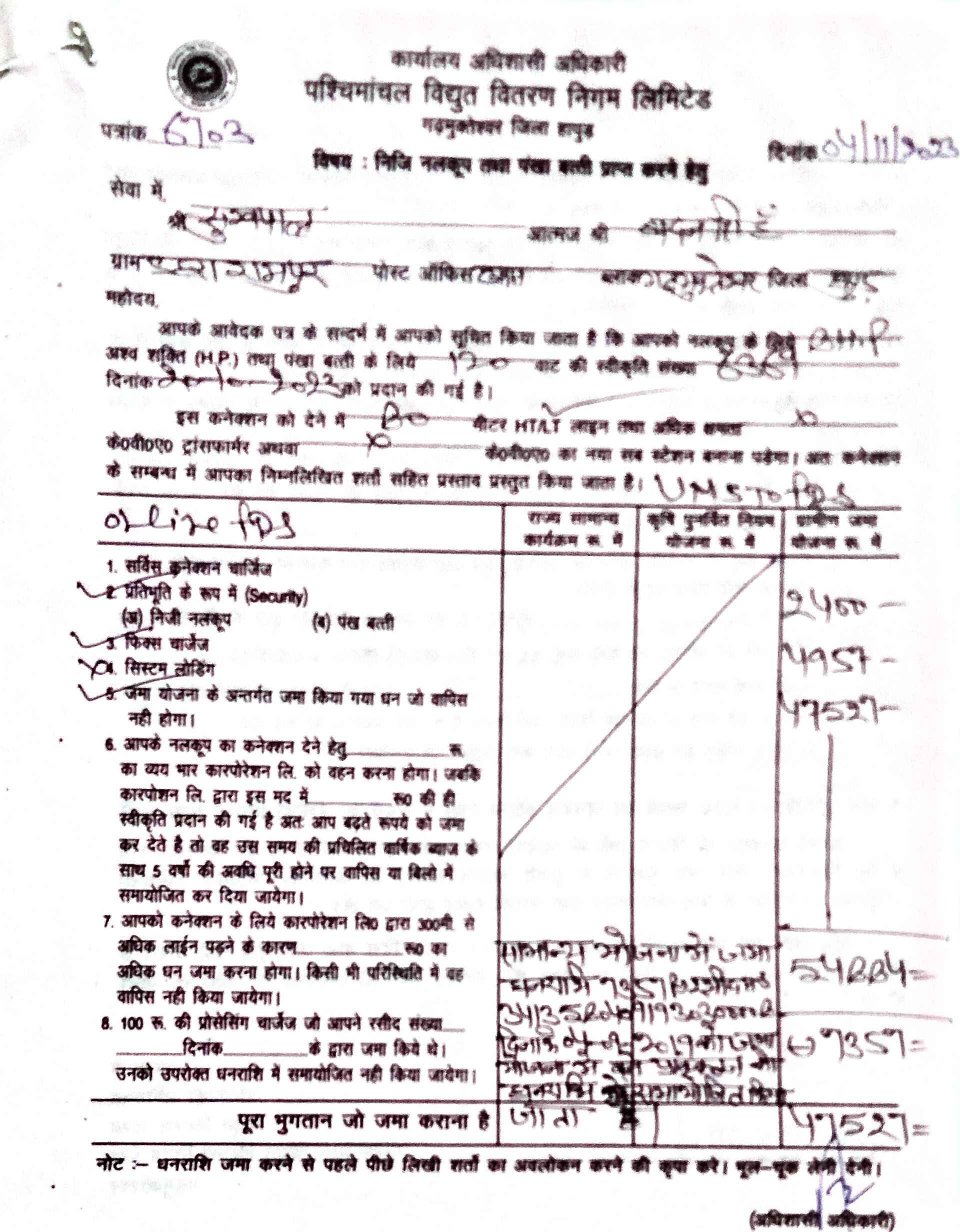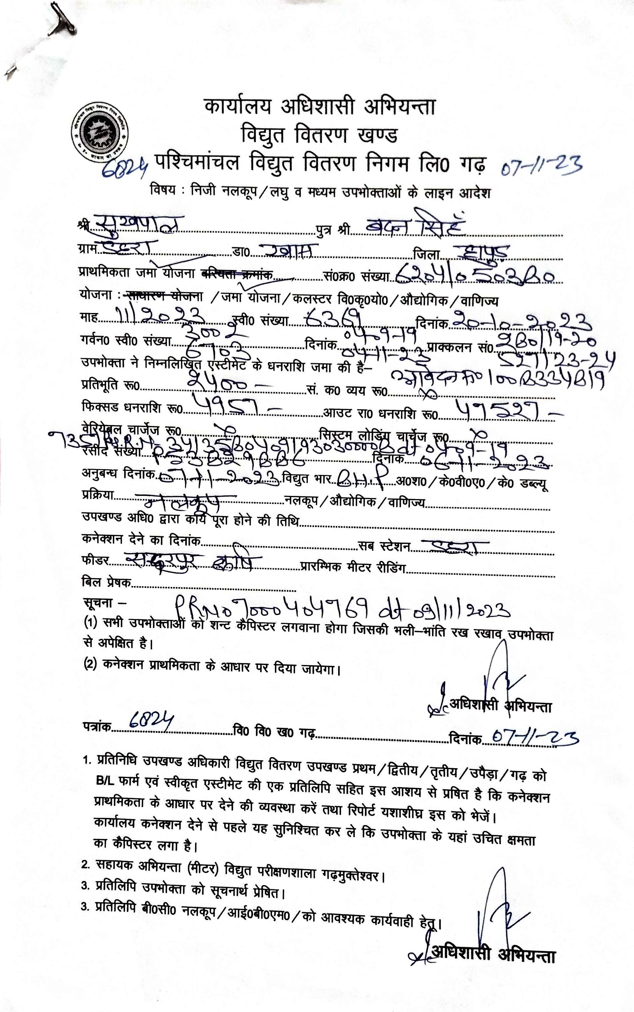 | 1 | Dear Applicant your phone is switched off pls contact us substation DEHRA RAMPUR for your site survey then further process as per je report | 26/10/2023 | You can call me any time for site inspection. Please upload estimate soon. | 01/11/2023 |