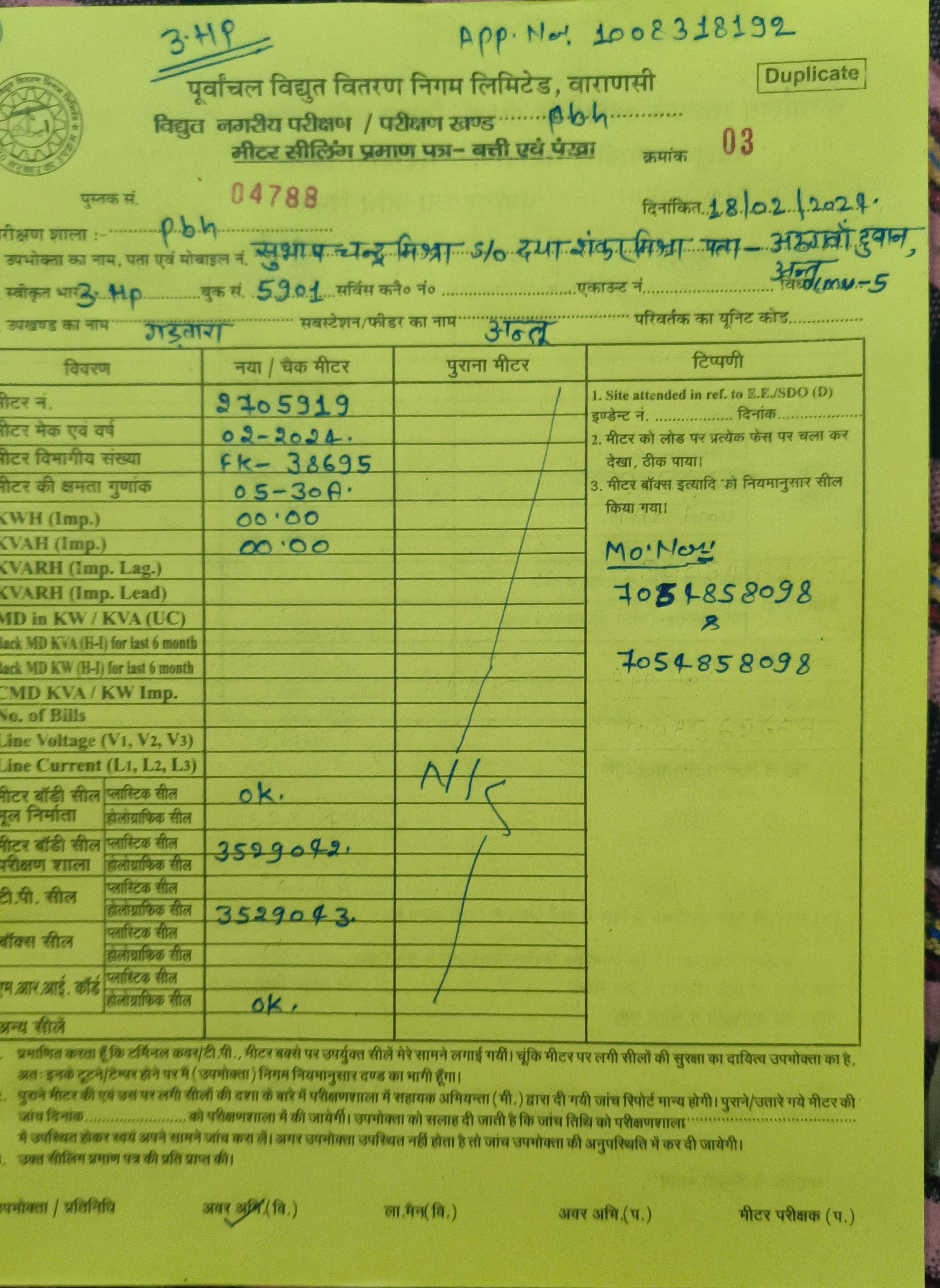 | 1 | Meter Installed connection released but sealing not upload due to site problem | 06/12/2023 | Application resubmitted for further proceedings due to response not getting from enterpreneur with in predefined time limit. | 21/02/2024 |
